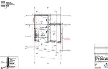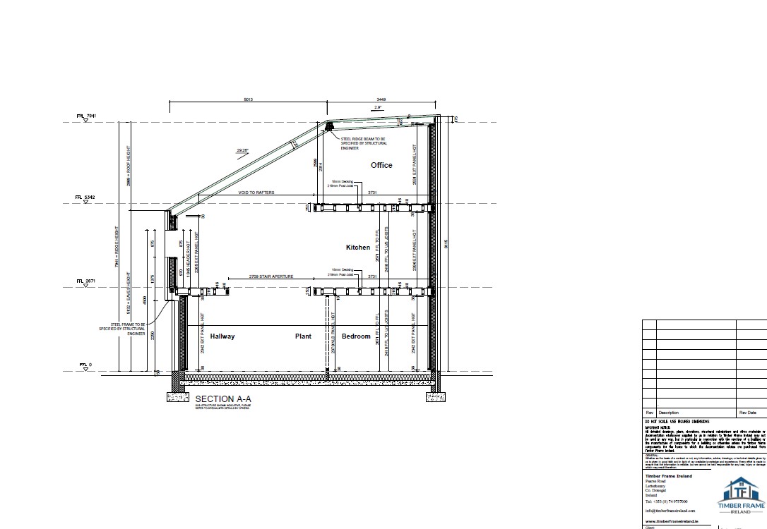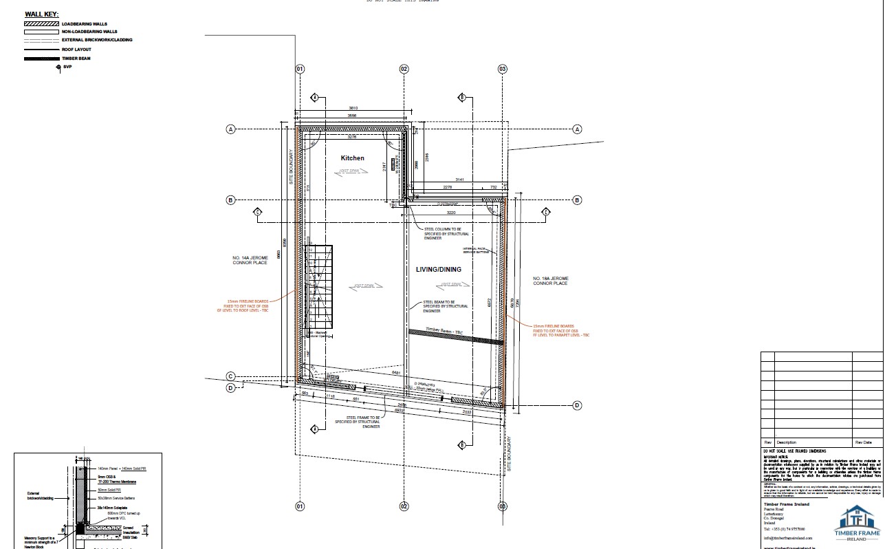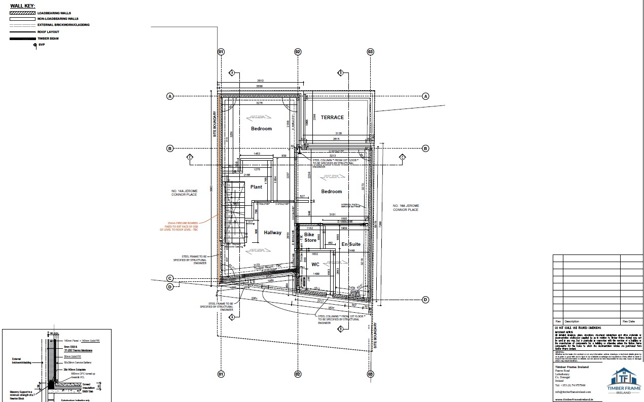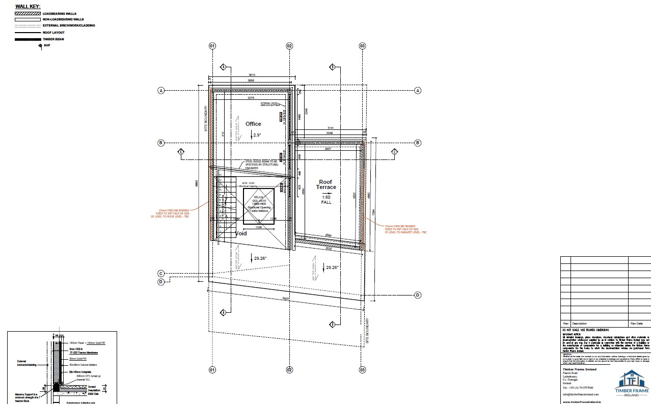 A modern new build constructed in County Waterford. The client chose our Passive Insulated foundation system, complimented by our closed panel Eco Package. The client also opted for metal webbed joists to the first floor and rafters, pumped with cellulose, 18mm OSB3 to exterior, airtightness membrane & 35mm service battens. The flat roof also closed with OSB by our team.
